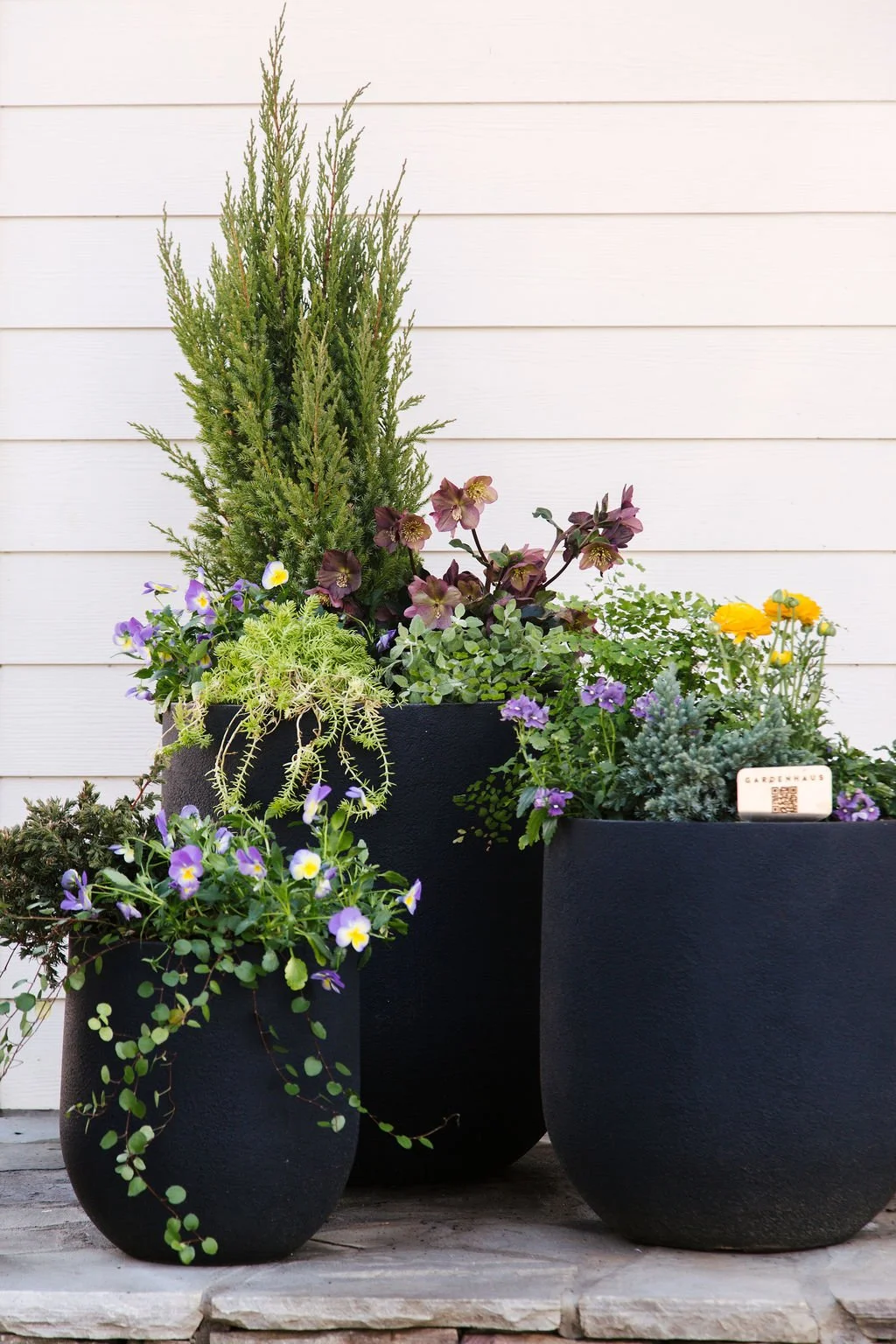 The ultimate statement! Designed to fill two large planters flanking a door or a curated collection. This tier transforms your entryway into a showstopping display. Generally 14-18 plants per install.